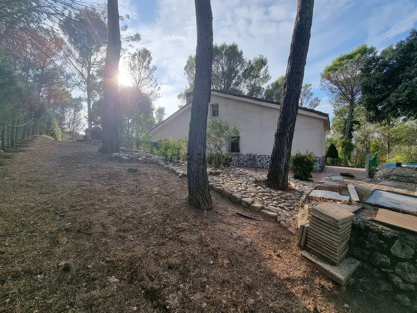 La vivienda se encuentra en una parcela de 4200m2, la mayoría de terreno no tiene casi pendientes. Dispone de piscina, almacén y zona para hacer un huerto.
