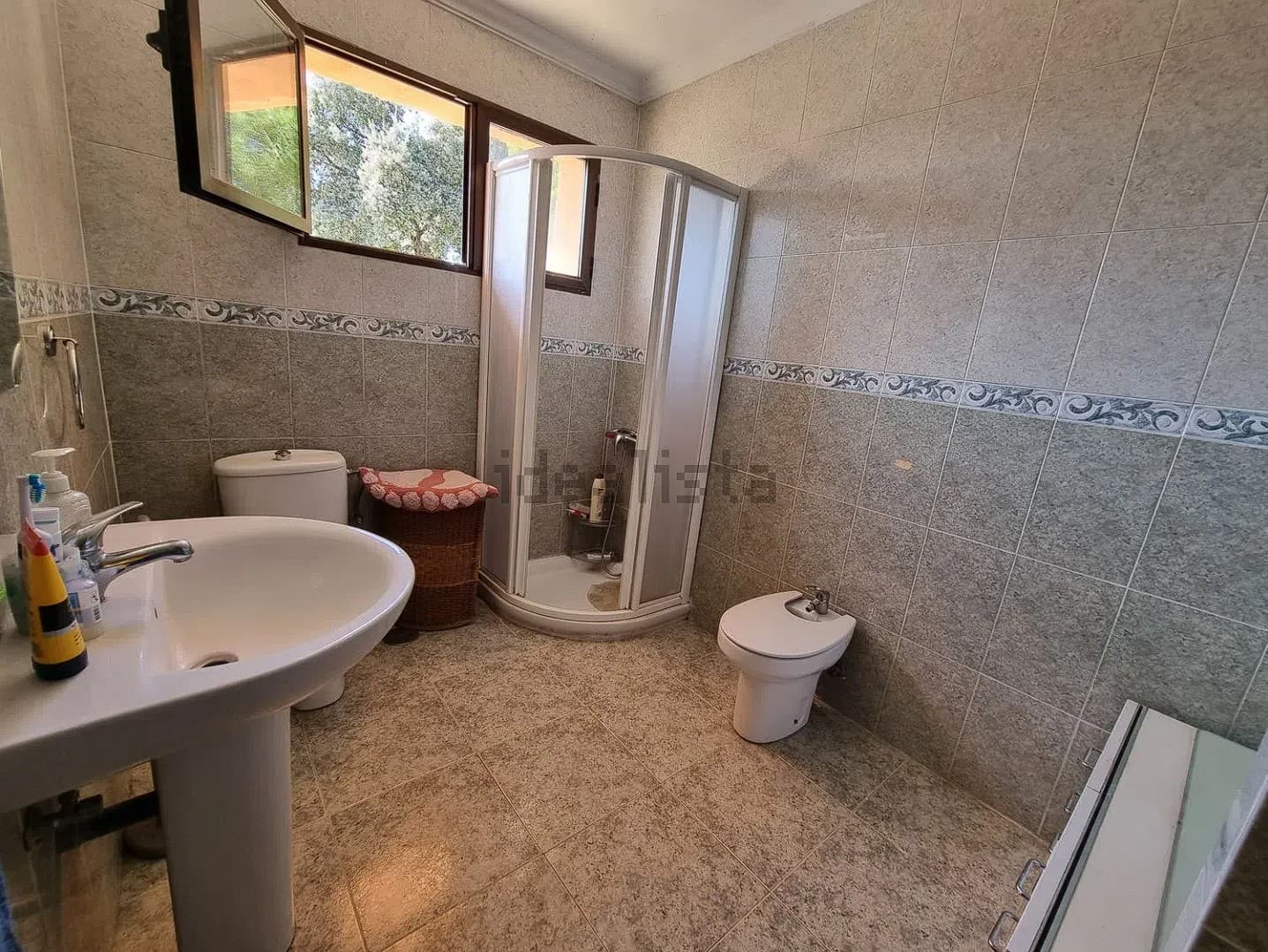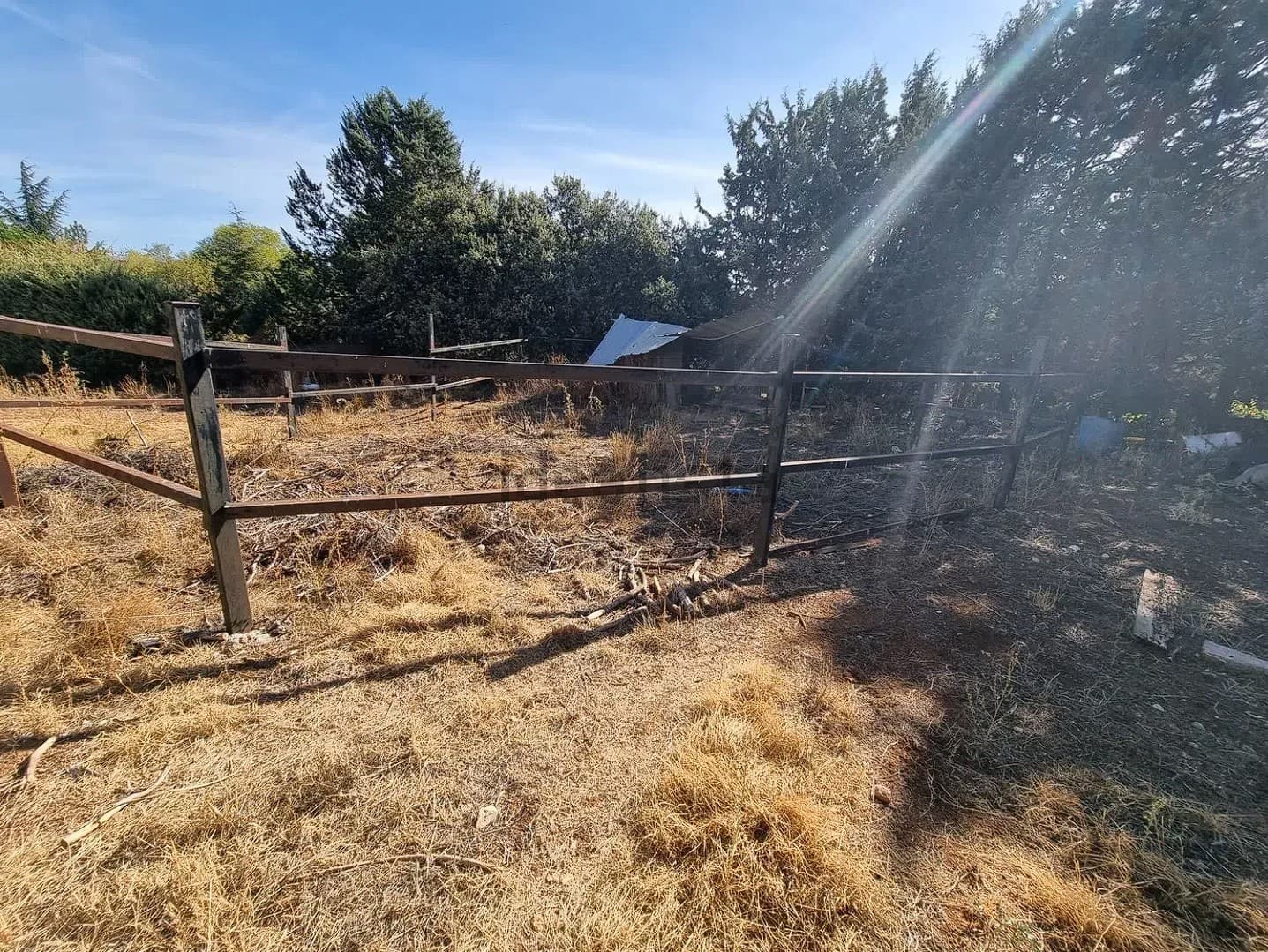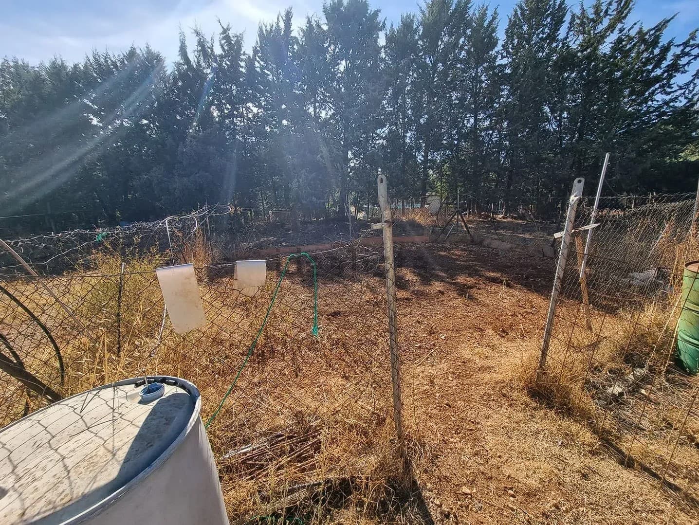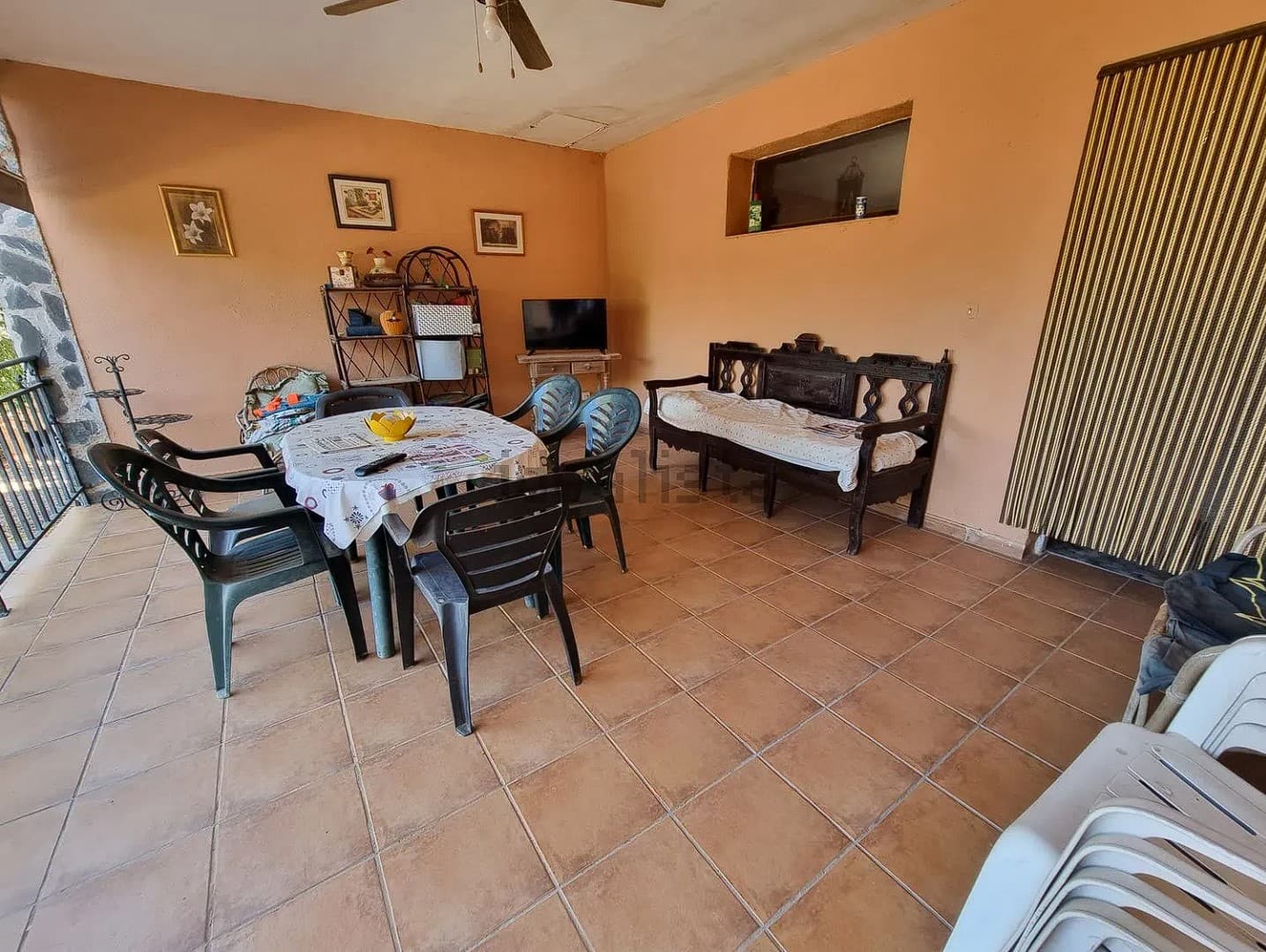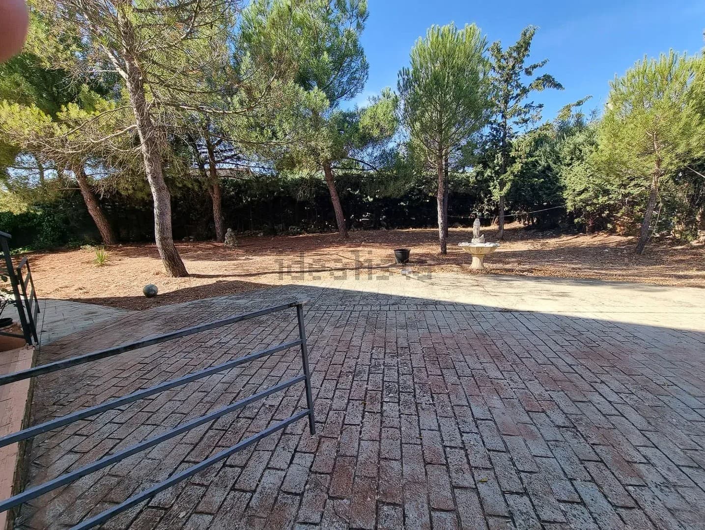 La vivienda se encuentra en una parcela de 3200 m2 prácticamente sin pendientes. Dispone de piscina, almacén, establo, cubierta para dos vehículos y zona comedor con barbacoa.