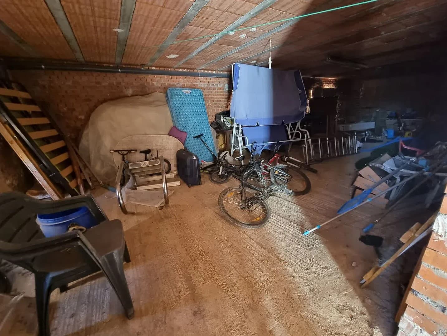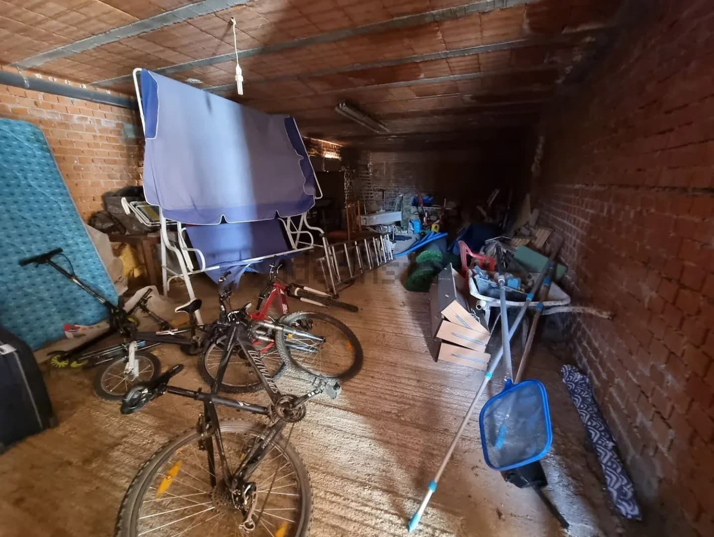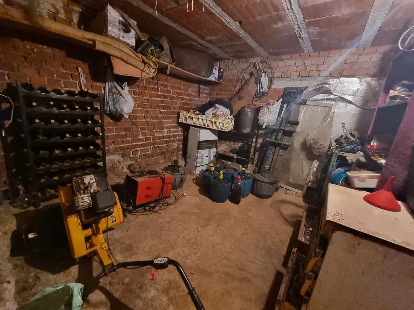 La parte inferior de la vivienda se utiliza como garaje, dispone de almacén amplio y otro de tamaño reducido, cuenta con baño completo y dormitorio.