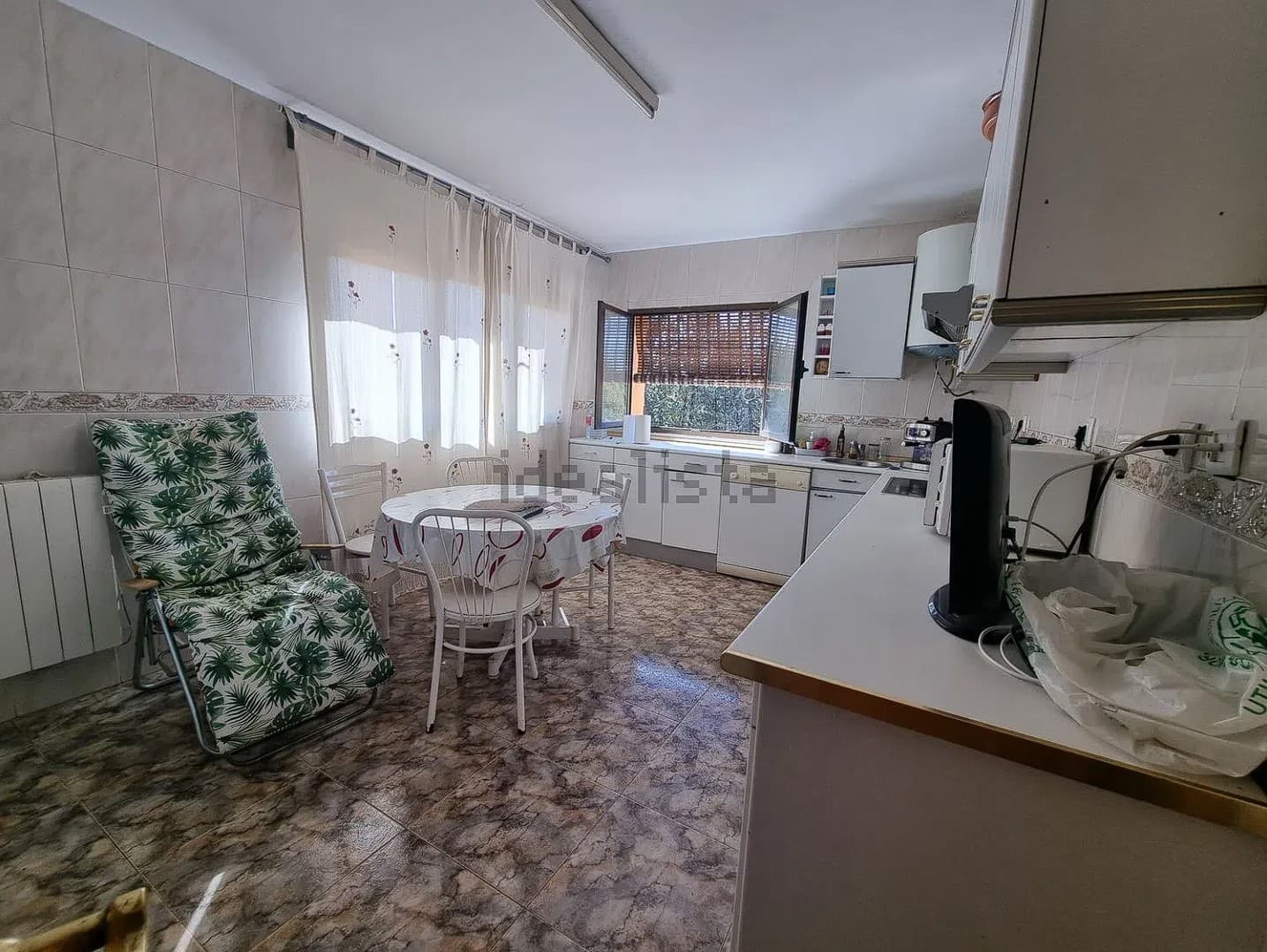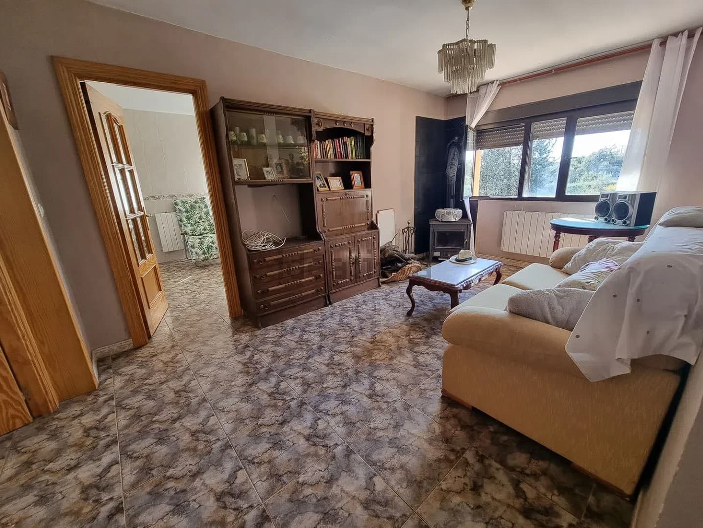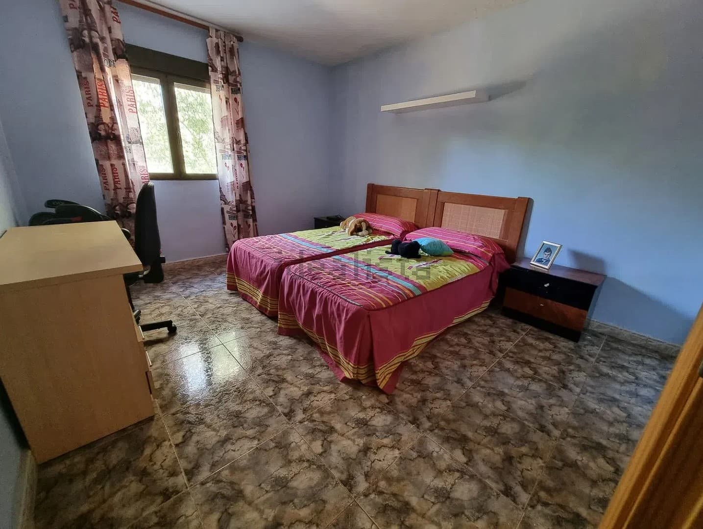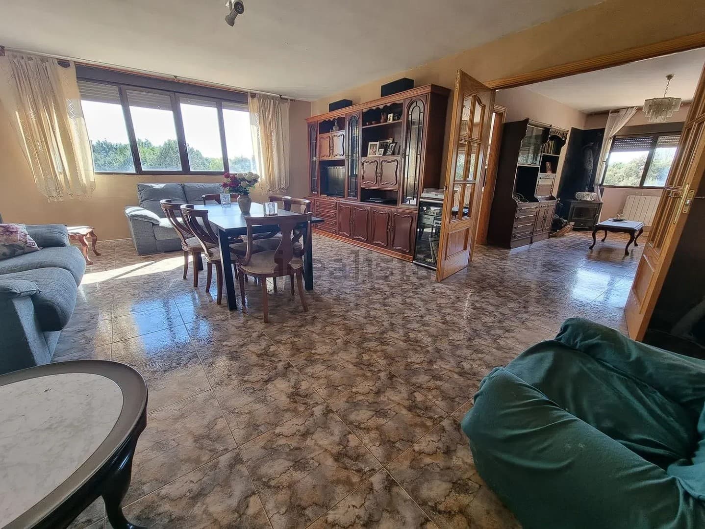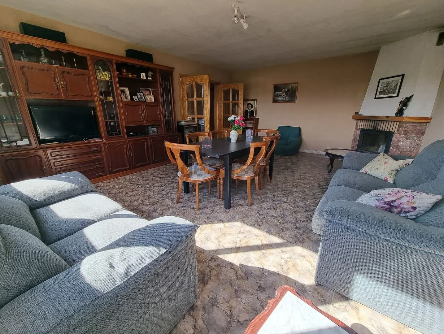 La vivienda se accede desde un porche abierto muy espacioso ideal para las reuniones familiares, en el interior cuenta con cuatro dormitorios muy grandes, salón independiente muy amplio con chimenea francesa, dos baños completos y cocina amueblada.